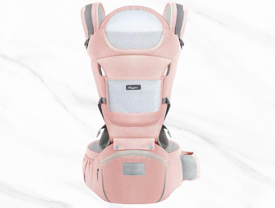 Asiento ergonómico de la cadera: el taburete de la cintura mantiene la forma de M del bebé durante el transporte, ayudando a su desarrollo esquelético. La cintura ancha hace que el asiento de la cadera se ajuste perfectamente a la cintura de los padres, ayudando a compartir el peso durante el transporte del bebé. El ángulo inclinado hacia adentro del asiento de la cadera mantiene al bebé cerca del cuerpo de los padres cómodamente y reduce los golpes y sacudidas cuando los padres caminan. Además, hace que el bebé se sienta seguro en sus brazos.